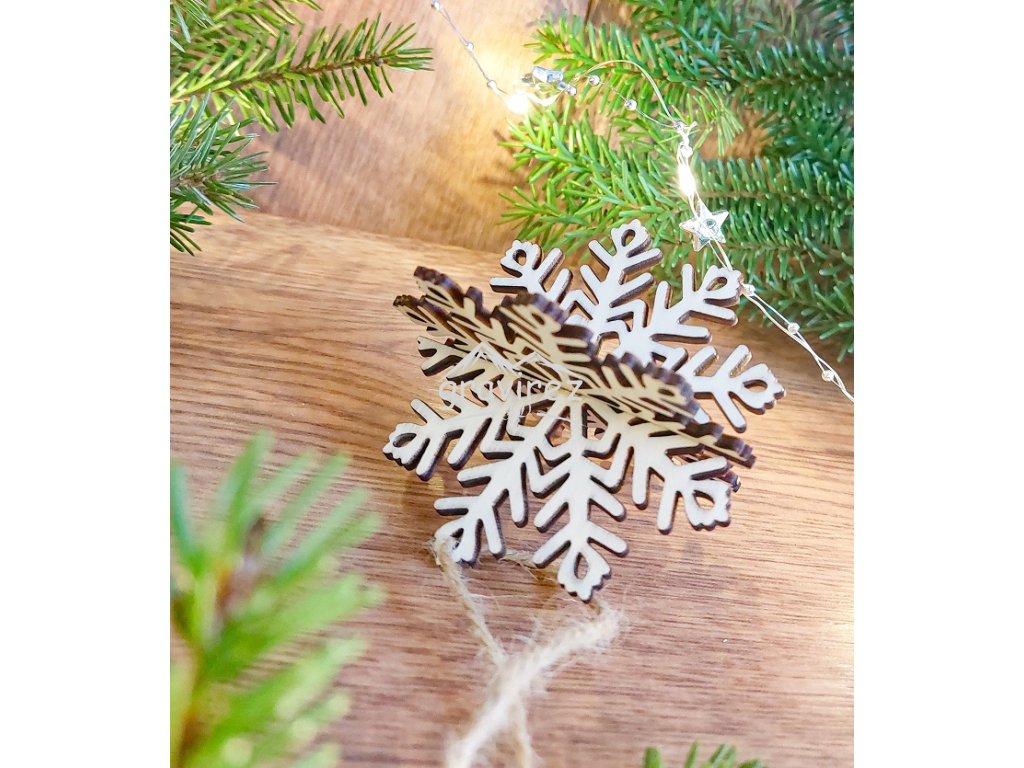 Drevené ozdoby sú vyrobené z topoľovej preglejky o hrúbke 3 mm. Prirodzená farba dreva. Ručne brúsené a lepené.