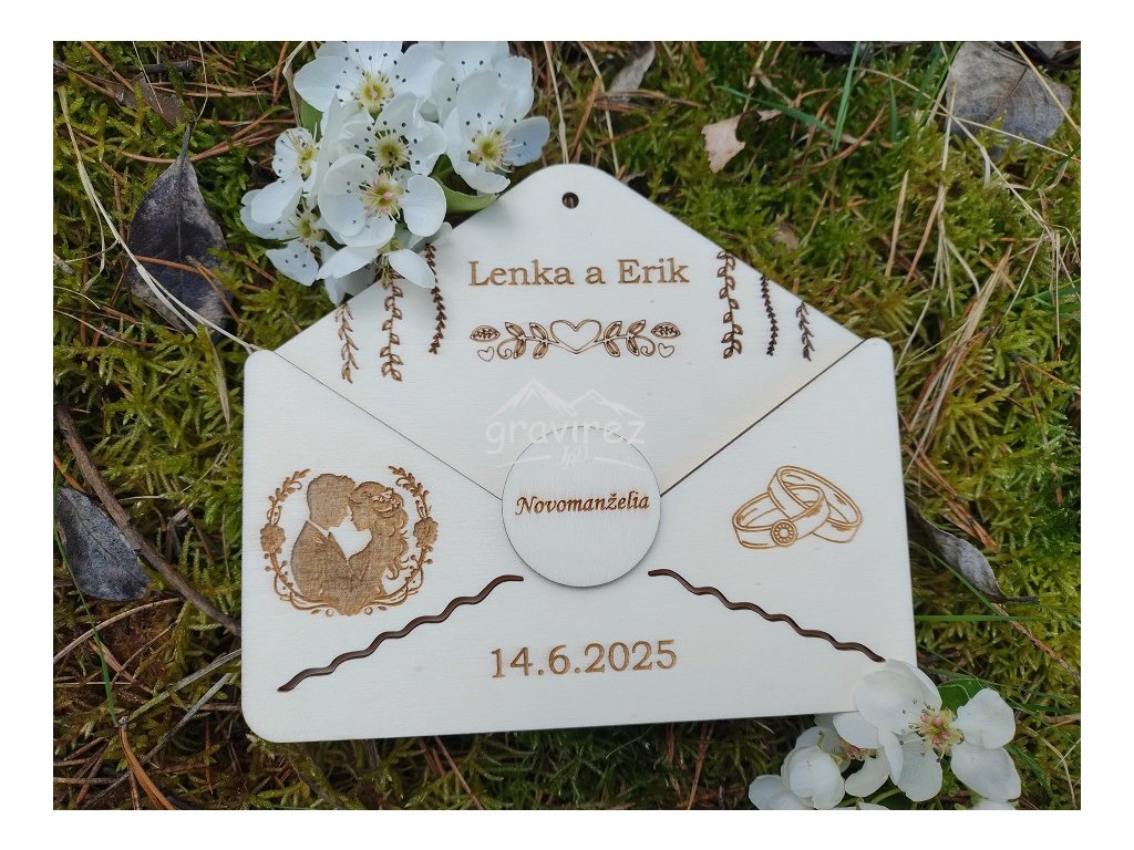 Motív a text je vygravírovaný laserom, čo dodáva vysokú presnosť pre detail. Obálka je vyrobená z topoľovej preglejky o hrúbke 3 mm. Je brúsená, čo jej dodáva krajší vzhľad pre detail a štruktúru vlákien dreva. Ručné lepená z dielov.