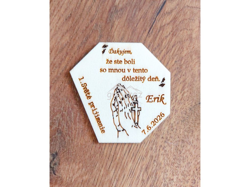 Motív a text je vygravírovaný laserom, čo dodáva vysokú presnosť pre detail. Magnetka je vyrobená z brezovej / topoľovej preglejky o hrúbke 3 mm. Je brúsený, čo jej dodáva krajší vzhľad pre detail a štruktúru vlákien dreva.