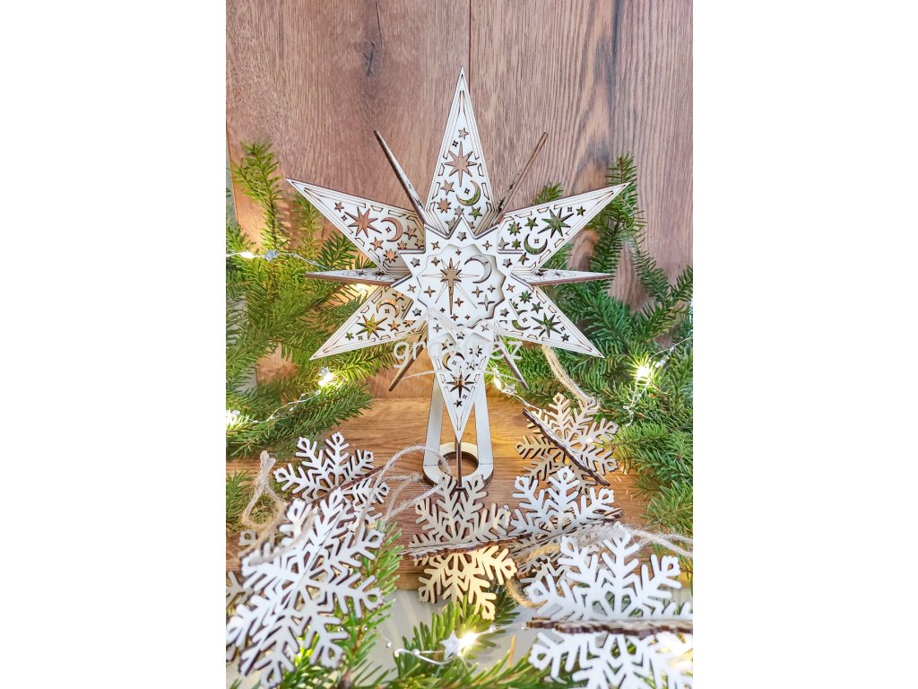 Prineste do vašich sviatočných dní kus prírody a skrášlite svoj stromček drevenou hviezdou a snehovými vločkami. Hodí sa na tradičný ale aj moderný stromček. Ich drevený povrch je detailne vyrezávaný s očarujúcim motívom, ktorý dodá stromčeku útulný vzhľad.
