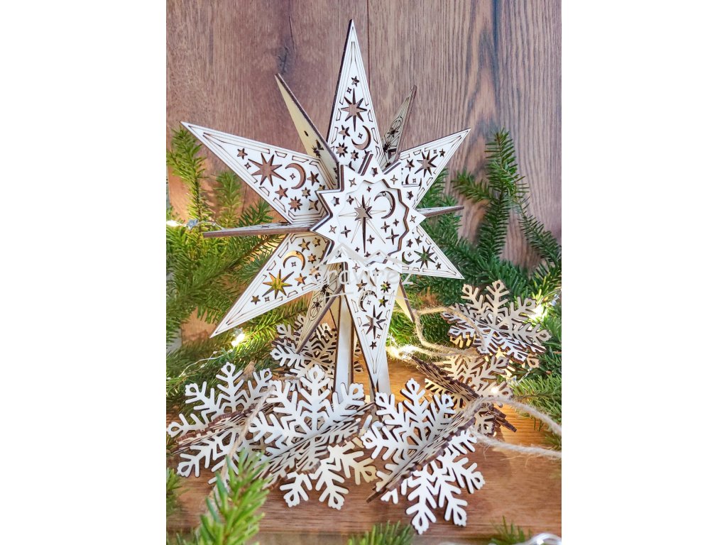 V balení sa nachádza hviezda a 6 ks snehových vločiek.
